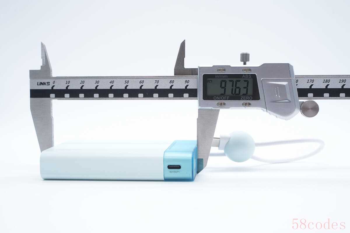 实测移动电源机身长度为97.63mm。