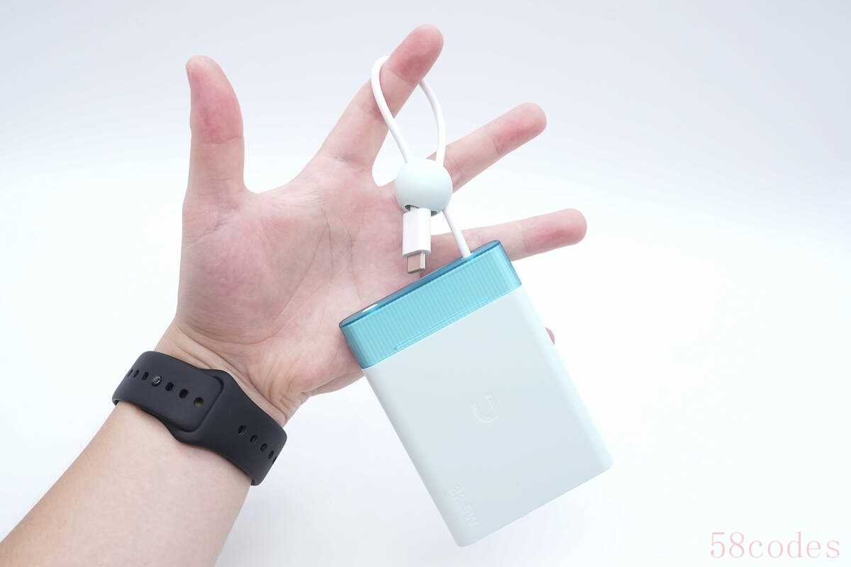 产品采用时下热门自带USB-C线设计,同时还带有一个收纳球,日常出行无需额外带线。