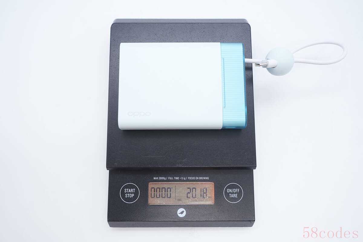 另外测得移动电源重量约为202g。