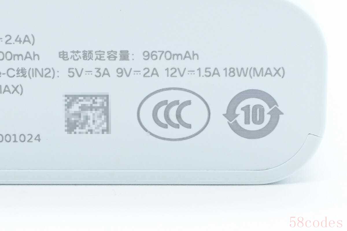 底部外壳上印有移动电源参数信息。
