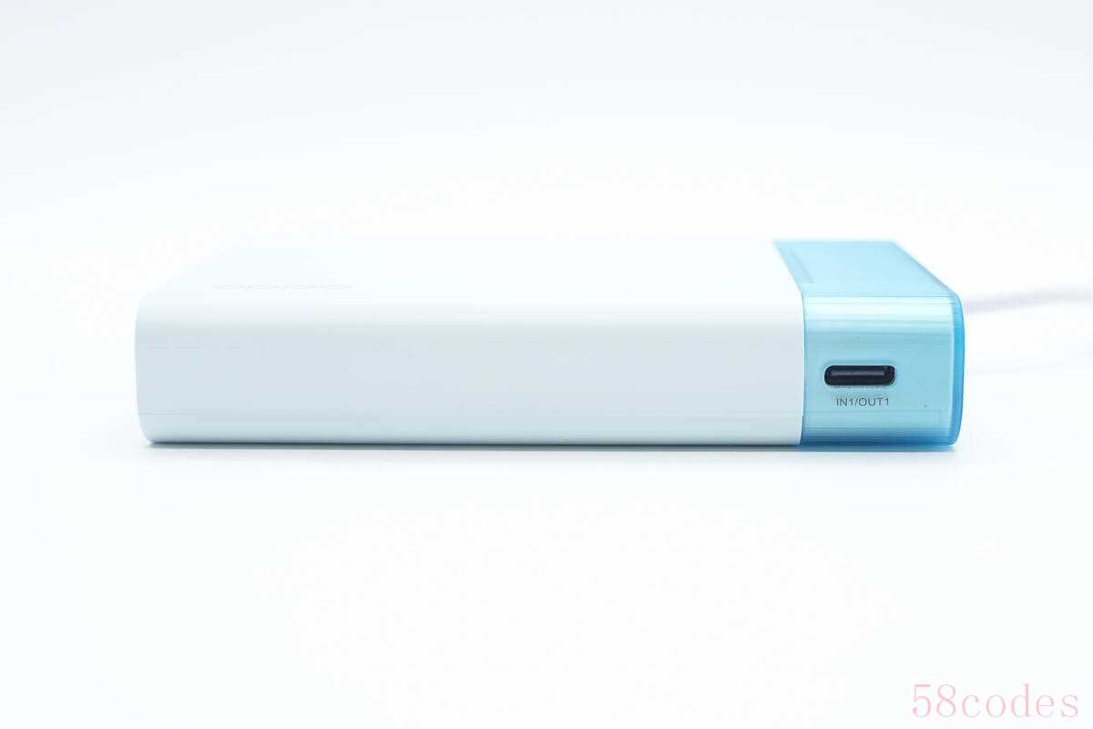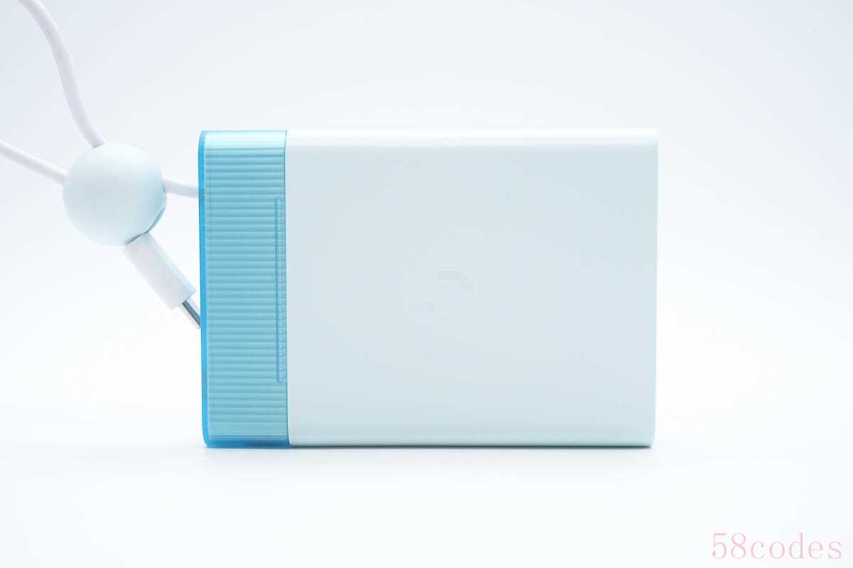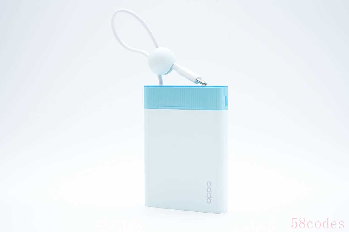 OPPO能量果冻快充移动电源为蓝色基调配色,加上机身十分小巧扁平,整个给人一种十分小清新的观感。