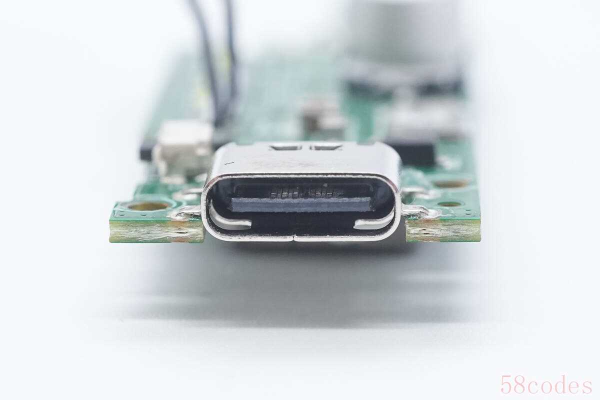 USB-C接口母座特写,过孔焊接。
