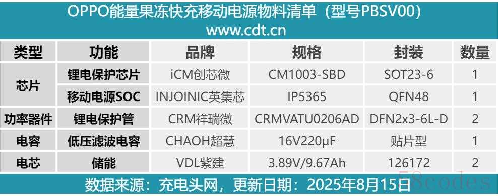 最后附上OPPO能量果冻快充移动电源的核心器件清单,方便大家查阅。