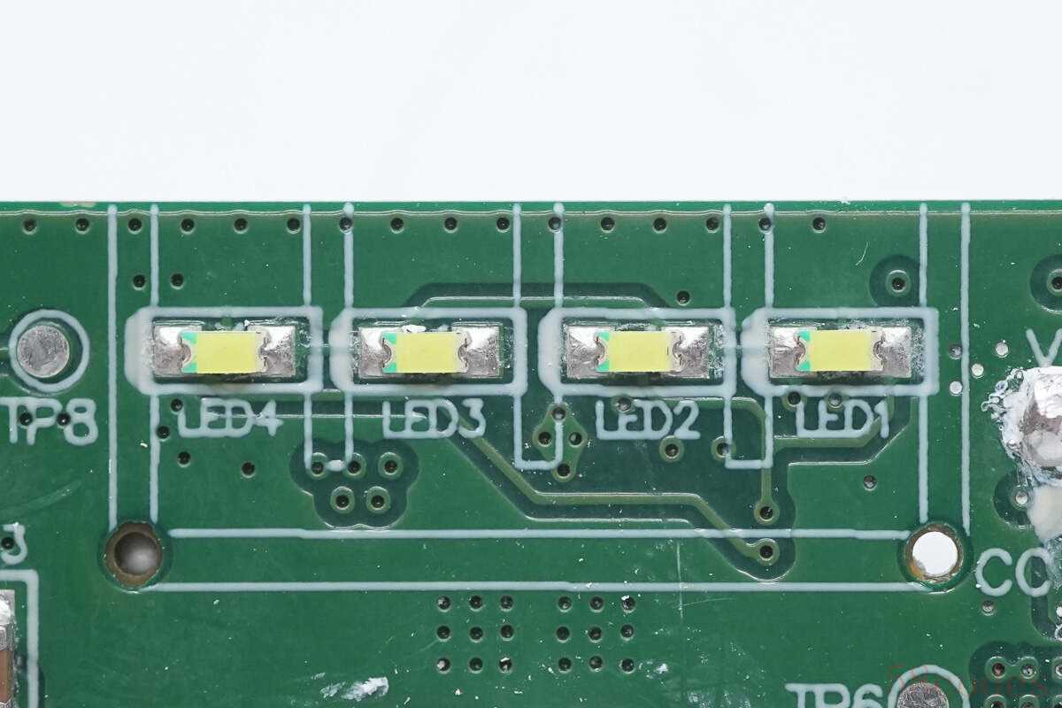 四颗LED电量指示灯特写。