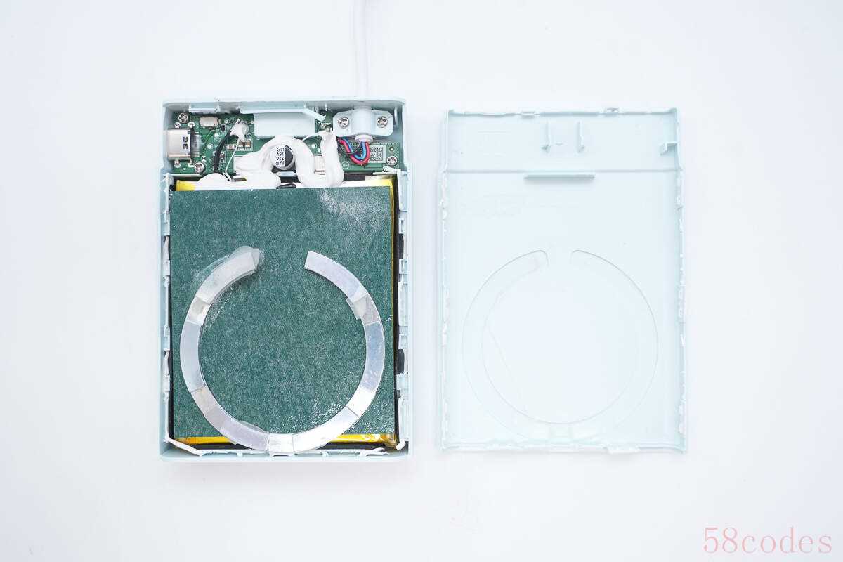 此外移动电源还额外配置一个USB-C快充接口,最多可同时为两部手机充电,结伴同行的小伙伴也能使用。性能方面,提供18W输入以及22.5W输出,无论是自充电还是手机快充,效率都相当不错。下面充电头网就对其进行拆解,看看做工用料如何。