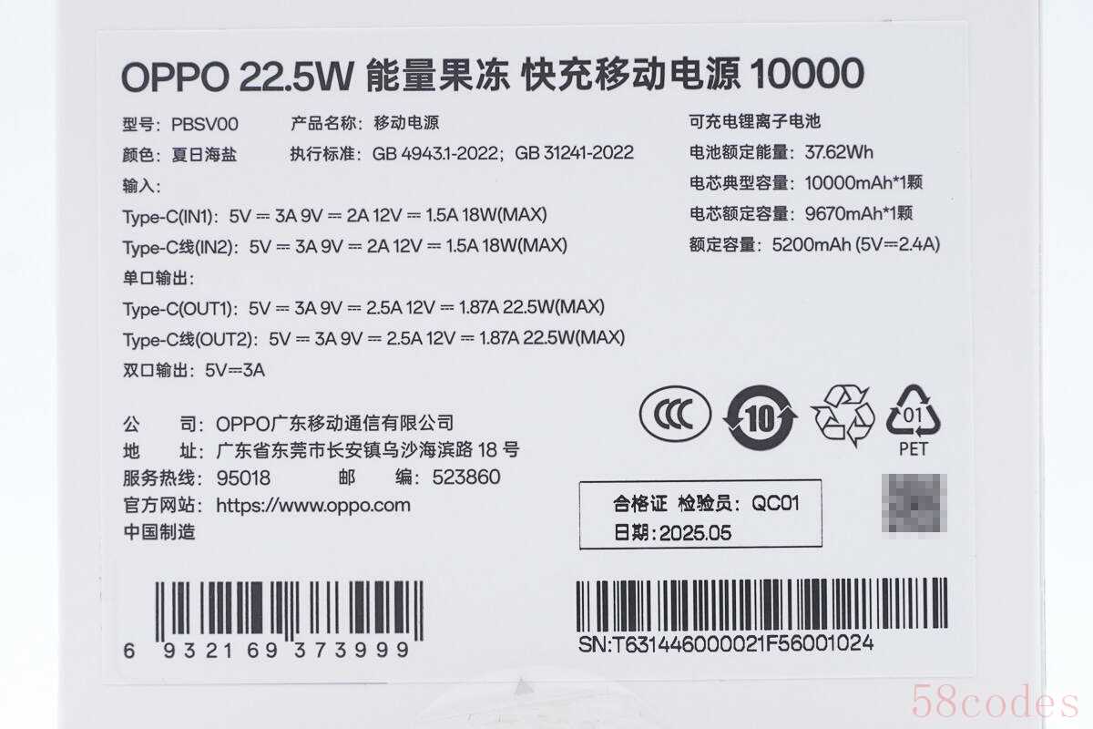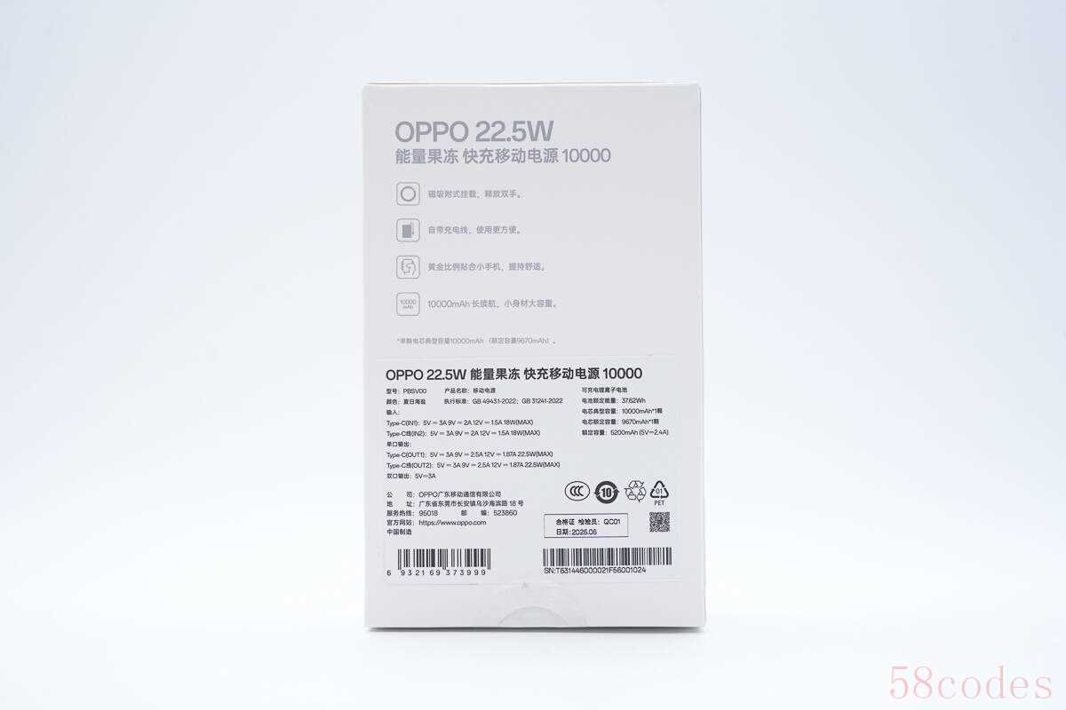 1. "轻薄小巧 (Slim & Compact):" 这是 OPPO 能量果冻系列的核心卖点之一,通常厚度控制在 1cm 以下,宽度、高度也相对紧凑。