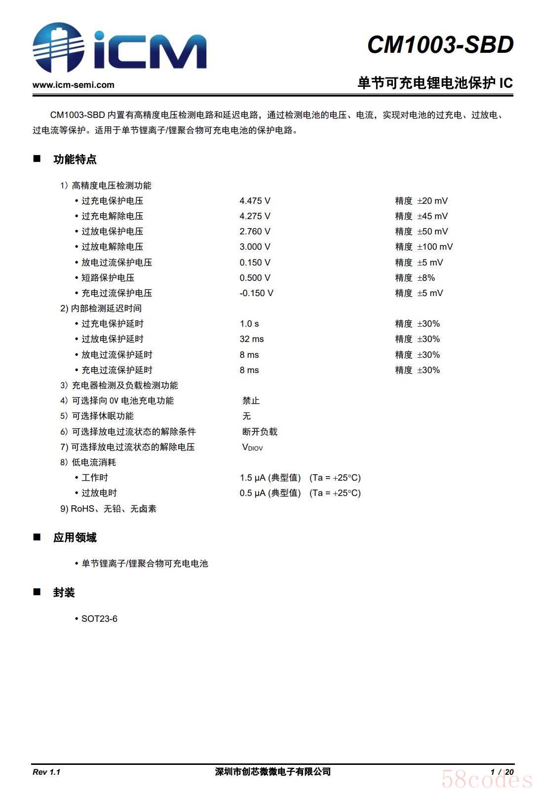 创芯微 CM1003-SBD 资料信息。