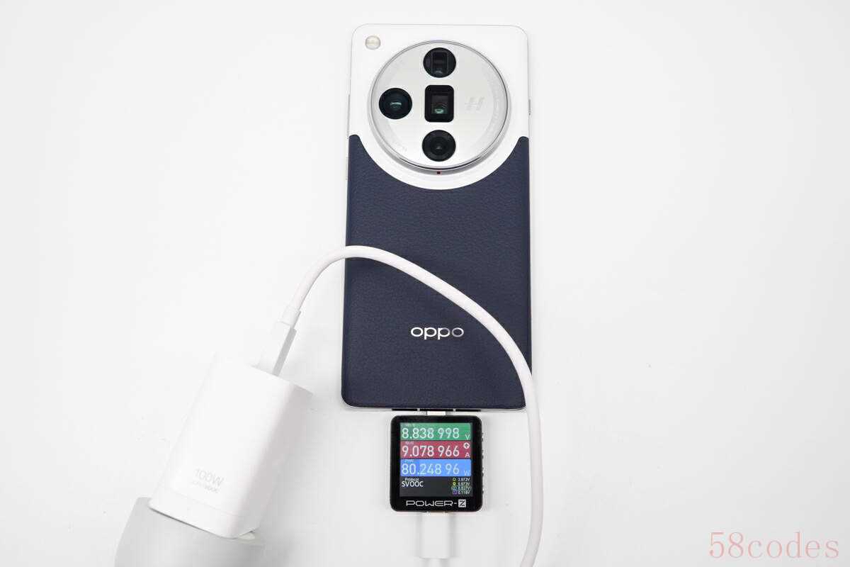 使用配套的100W充电器套装为OPPO Find X7 Ultra 手机充电,POWER-Z KM003C 测试仪实测当前手机输入端功率为8.84V 9.08A 80.25W。
