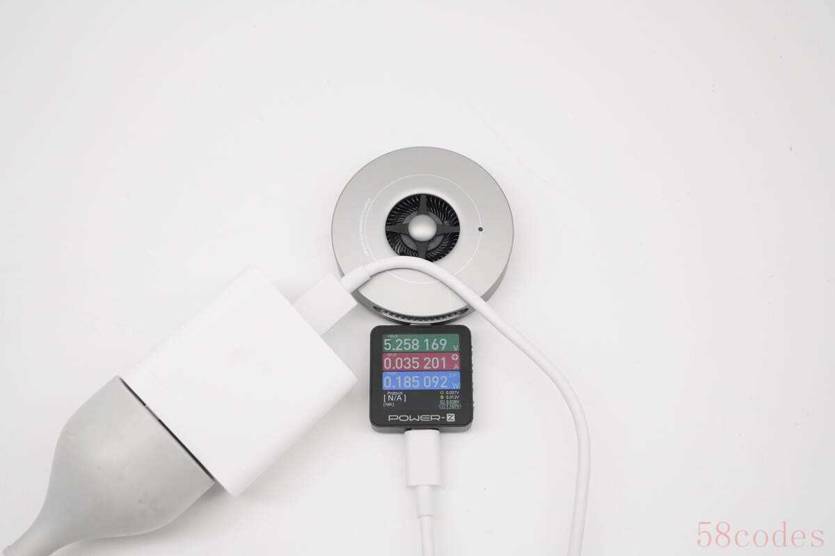 使用OPPO 100W充电器连接OPPO AIRVOOC 50W 磁吸无线充电器,实测空载功耗为5.26V 0.04A 0.19W。
