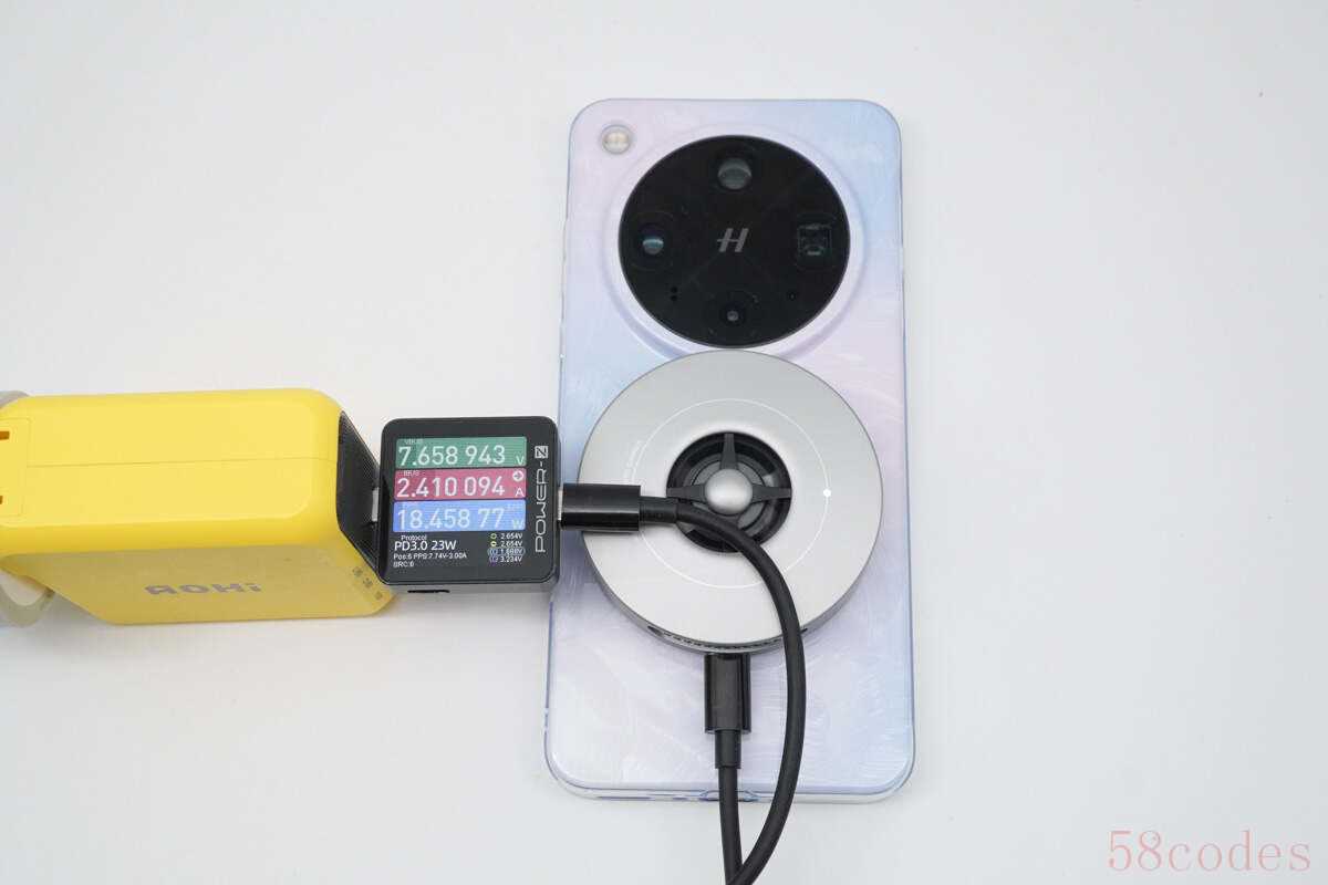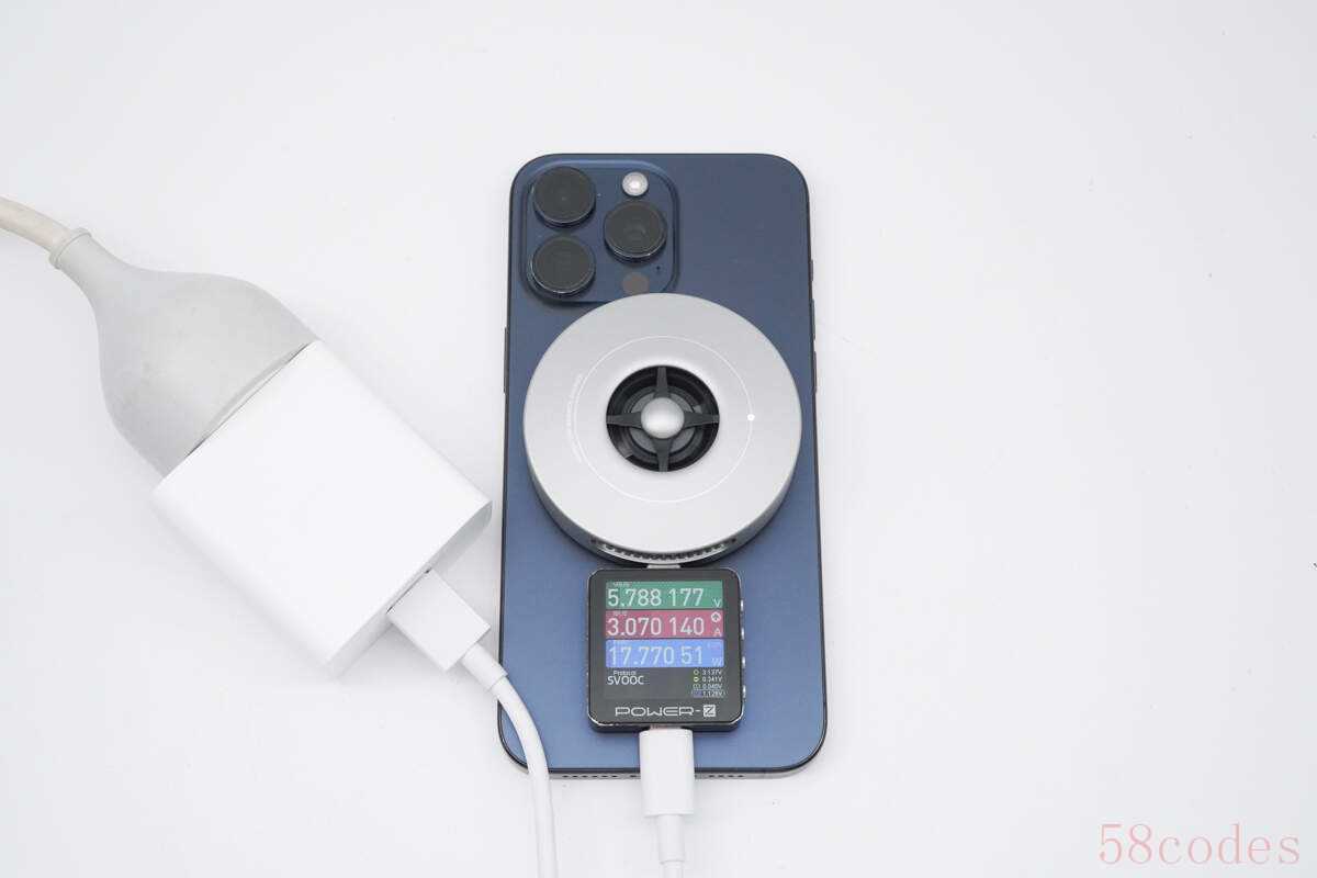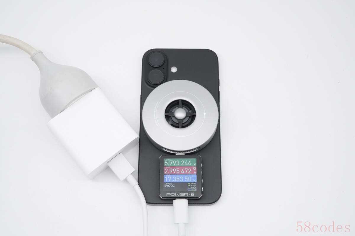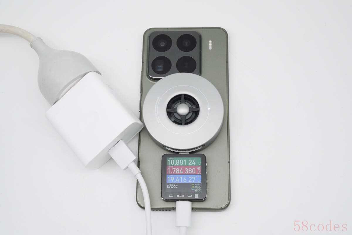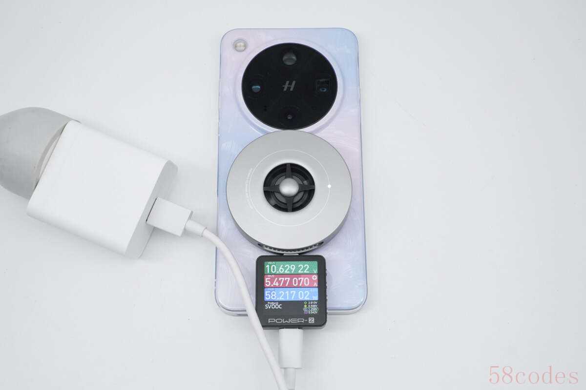 佩戴上原厂磁吸壳后,实测功率为10.63V 5.48A 58.22W。