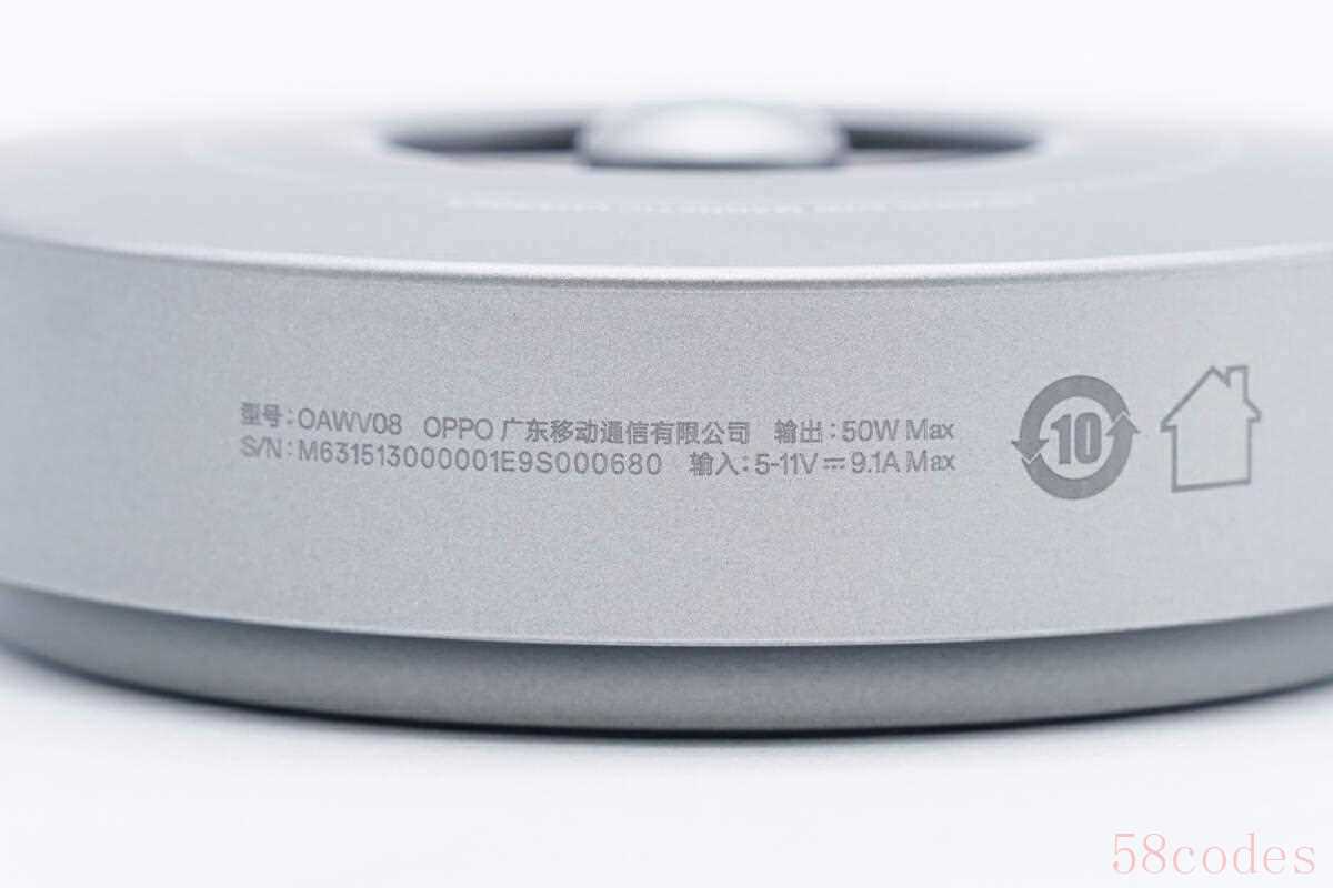 外壳上印有AIRVOOC 50W MAGNETIC CHARGER。