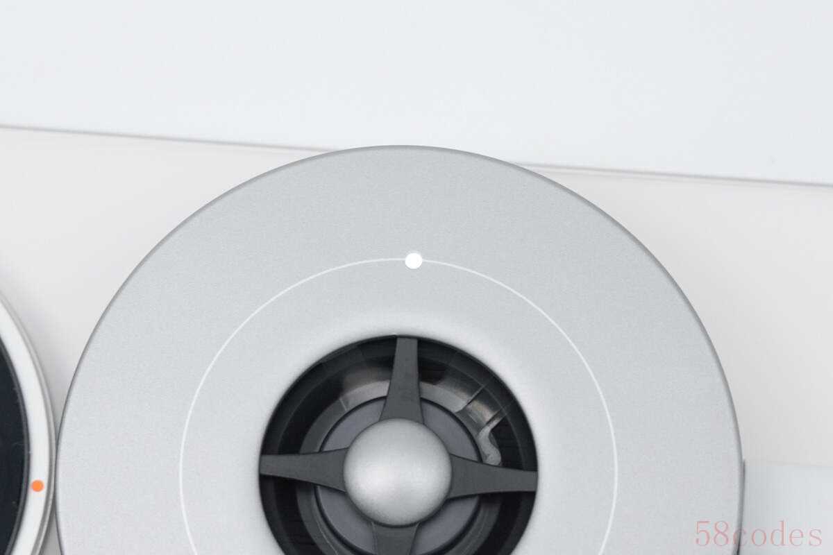 机身顶部为中心镂空进风口,外圈设有一颗通电指示灯,通电后为白色。