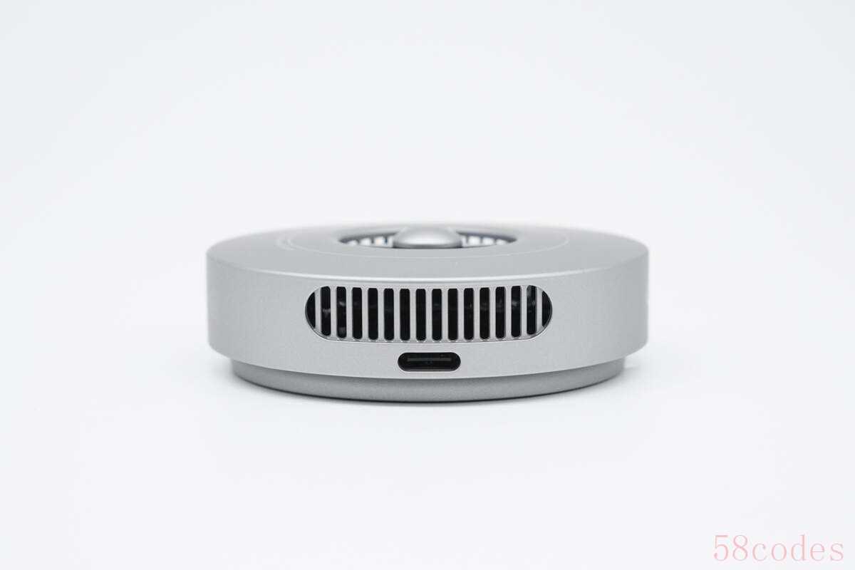 下方出风口旁还配置有USB-C供电接口,黑色胶芯不露铜。