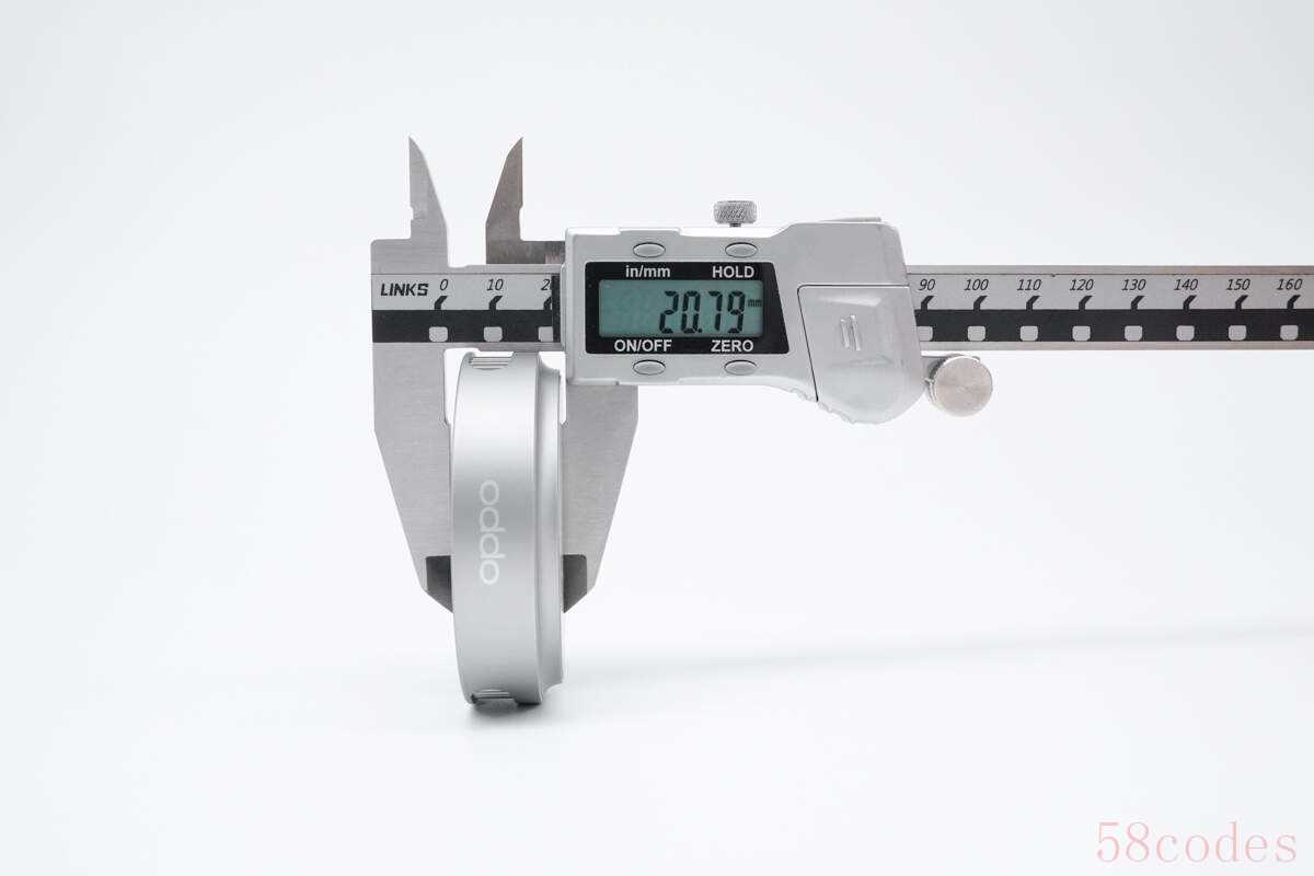 OPPO AIRVOOC 50W 磁吸无线充电器厚度约为20.79mm。