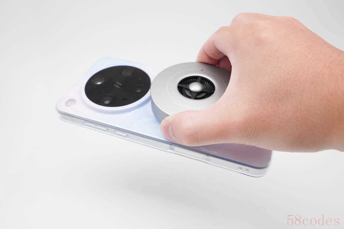 OPPO 50W 磁吸小涡轮无线充电器可完美磁吸iPhone手机。