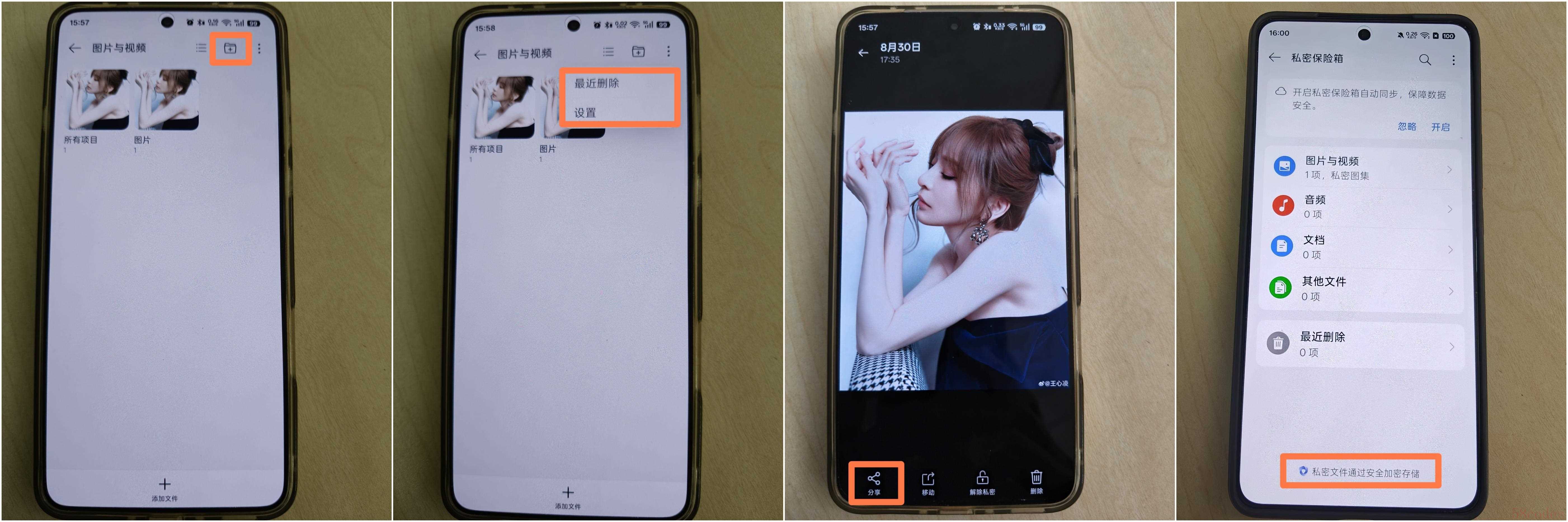 一个设备或一项功能得以流行,一方面自然是便捷、好用,另一方面必然是稳定、安全,两者同等重要缺一不可。尽管如今系统的权限进一步收紧,如今可按APP对能读取、上传的照片、视频单独授权,但依然有可能被相册、文件管理等应用遍历。随便就能被搜到、看到,虽方便却显然不安全。ColorOS 15搭载「私密保险箱」,将照片、视频以及文件添加进去后,通过专属的安全加密存储,部分机型还有专属的安全芯片提供数据保护,所有APP均无法遍历和读取,只能通过专属的入口进入。除了通过「设置」的「隐私」菜单,还能长按「相册」和「文件管理」底部快速查看。如果想进一步细化,还能自行创建文件夹进行分类,并设置专属的封面以便区分。如果图片和视频较多,也可按日期分组查看快速定位。如果不慎误触删除,不仅会进行指纹、密码验证,还会移入「最近删除」冷静30天,在截止时间到来时随时恢复。如果有分享的需要,也无需解密直接操作,系统会生成解密后的临时文件,在对方接收后便自动清除,尽可能降低泄密的风险。以些许的不便,换取更大的隐私防护,相信有这方面需求的用户都不难选择。如果后续升级能支持加密文件的直接编辑,效果无疑会更好。