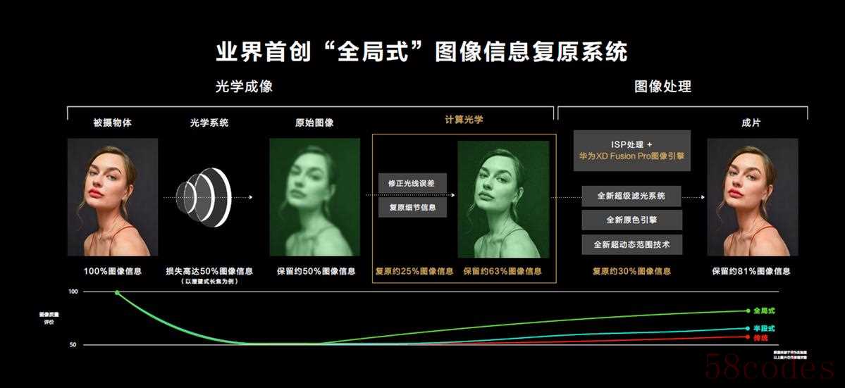 全新计算光学技术突破光学系统的物理边界,以革命性技术释放全新的创造力,助你拍出令人叫绝的好照片。这是业界首创“全局式”图像信息复原系统,第一次在光学成像端能复原原始图像信息,修正光线误差、还原细节,突破光学设计的限制,实现原始图像信息复原高达25%。
