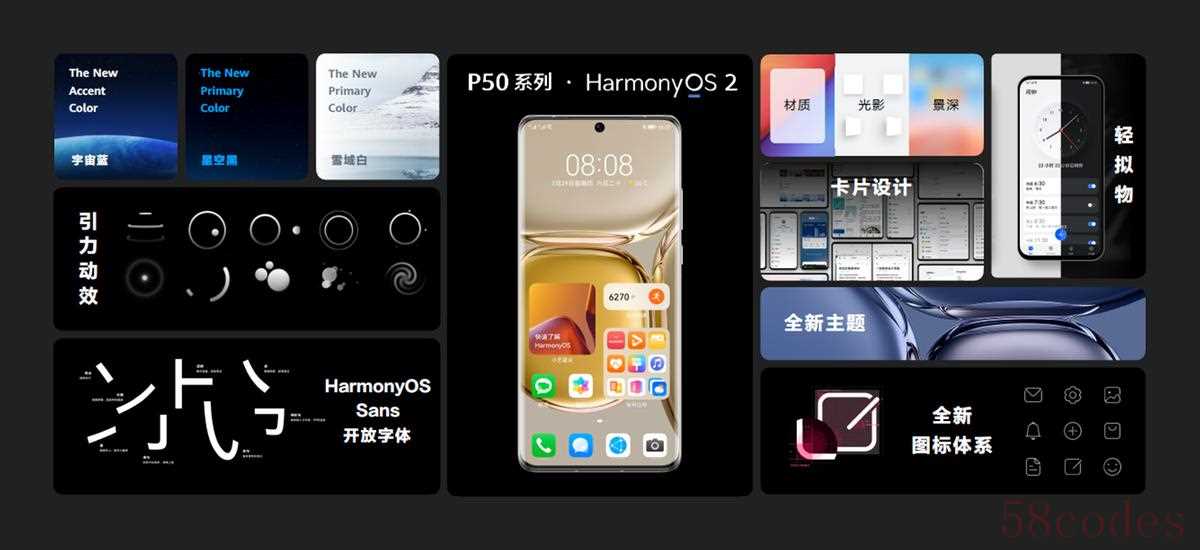 自6月2日发布至今,HarmonyOS 2已实现超过4000万用户升级,获得了广泛认可。HarmonyOS是新一代智能终端操作系统,为不同设备的智能化、互联与协同提供统一的语言。HUAWEI P50系列全新的桌面更简洁有序。上滑APP图标即可呼出万能卡片,实时更新的卡片信息只需一瞥即可获取。卡片可大可小,可藏可显,可根据场景自由组合,让每个桌面都独一无二。作为原子化服务载体的卡片在服务中心还可轻松获取。HarmonyOS 2还创造出智能文件夹显示方式,点击文件夹中的图标即可打开APP。