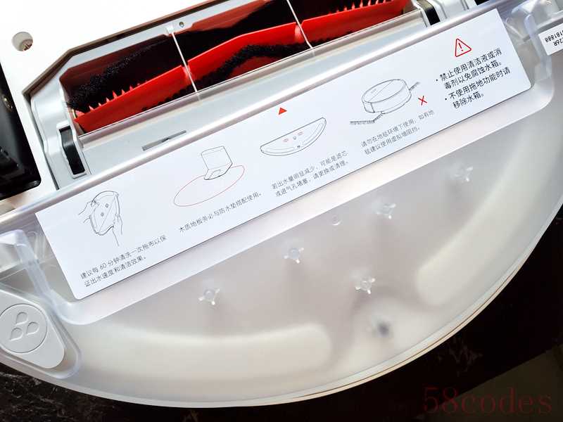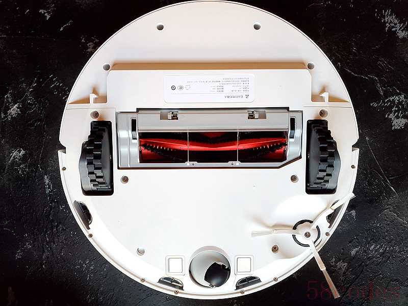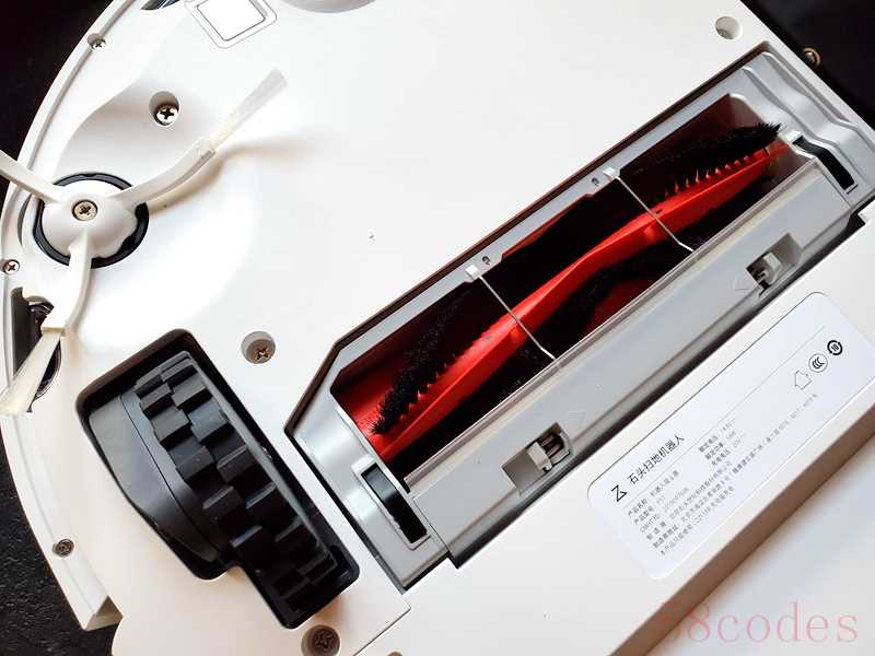 背部,石头扫地机器人P5底部是可拆卸式主刷和上下伸缩式滚轮,以及导向轮、边刷等零部件。