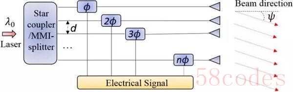 咱们先说相控阵,如果您是军迷,想必对相控阵应该不会太陌生。既然机械结构不动,我就让电磁波自身发生变化!水波和光的双缝实验,物理课上都讲过吧,简单说就是利用波的干涉特性,经过缝隙后会在某个方向加强,其他方向减弱。相控阵激光雷达也是利用这个基础原理,做了很多导管并排成阵列,激光光源经过导管阵列后会发生多缝干涉,产生定向增强的波束。此时我们再去调节激光光源的波长或相位,就能获得激光扫描的效果。