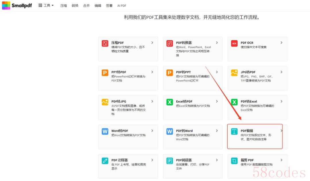 在浏览器中搜索打开该工具,在首页点击【文档处理】—【PDF编辑】工具;