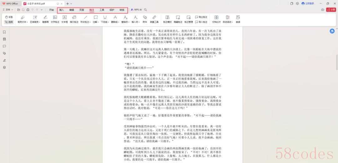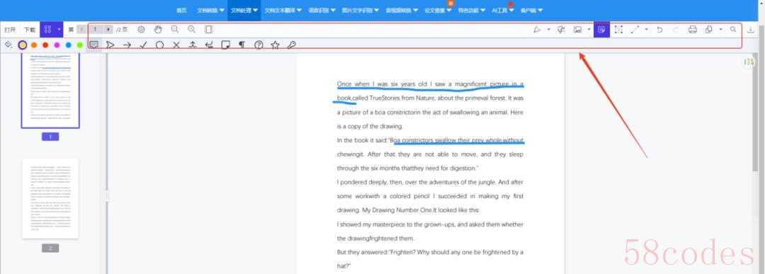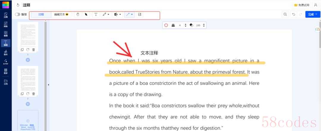 4. 在线编辑界面会打开,你可以进行文本修改、添加内容、绘制、注释等操作。