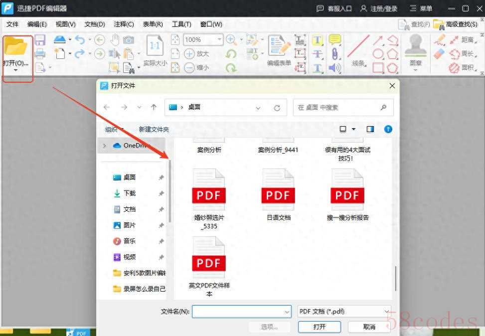 打开安装好的软件,在首页左上角点击【打开】按钮,从文件夹中导入需要编辑的PDF文件;