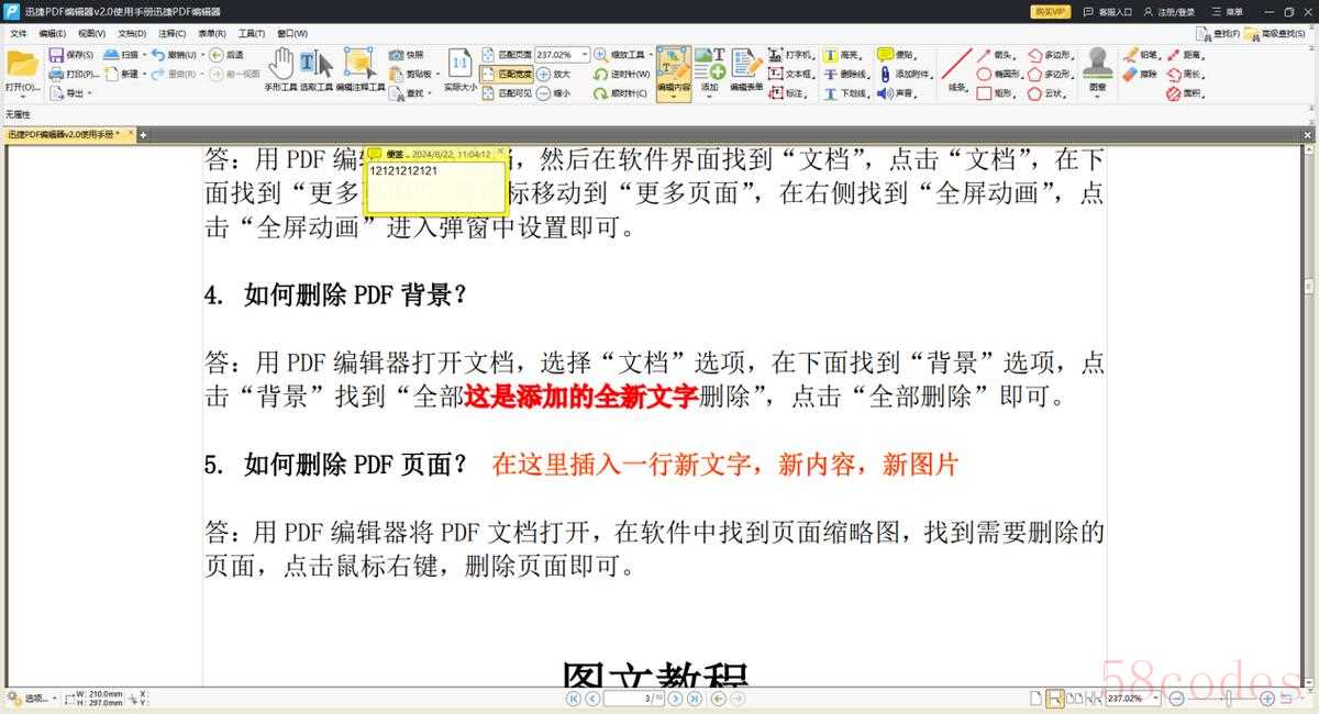点击“编辑内容”进入修改模式,单击文本就能直接进行编辑,例如添加文字、删除文字、高亮和下划线等操作。