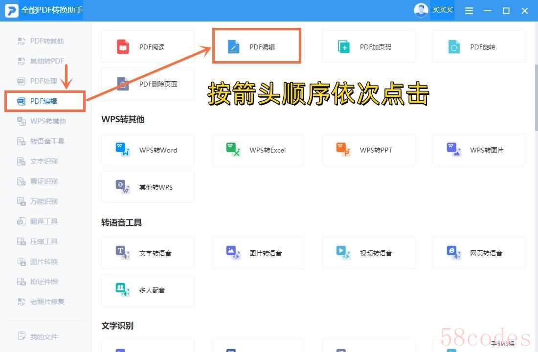 电脑中双击打开全能PDF转换助手,先在界面左侧工具栏选择【PDF编辑】,再从右侧点击【PDF编辑】功能;
