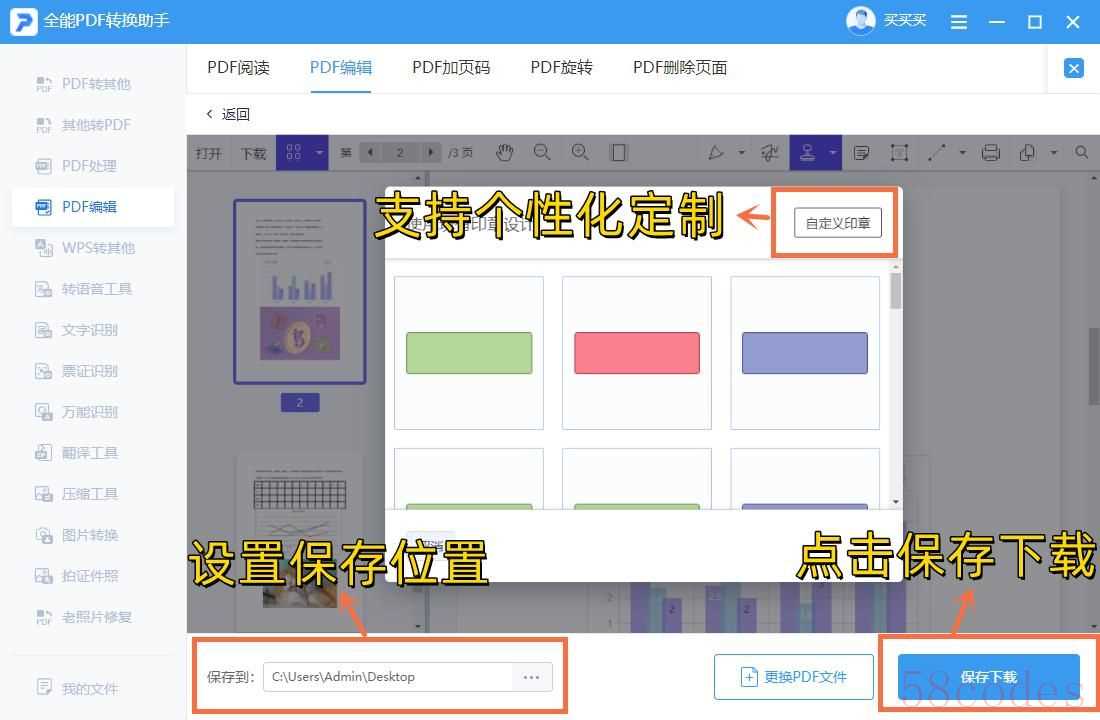 同时还可以个性化定制印章,让批注更方便!编辑完成之后,你们只要设置文件【保存到】的位置,就可以马上【保存下载】啦!