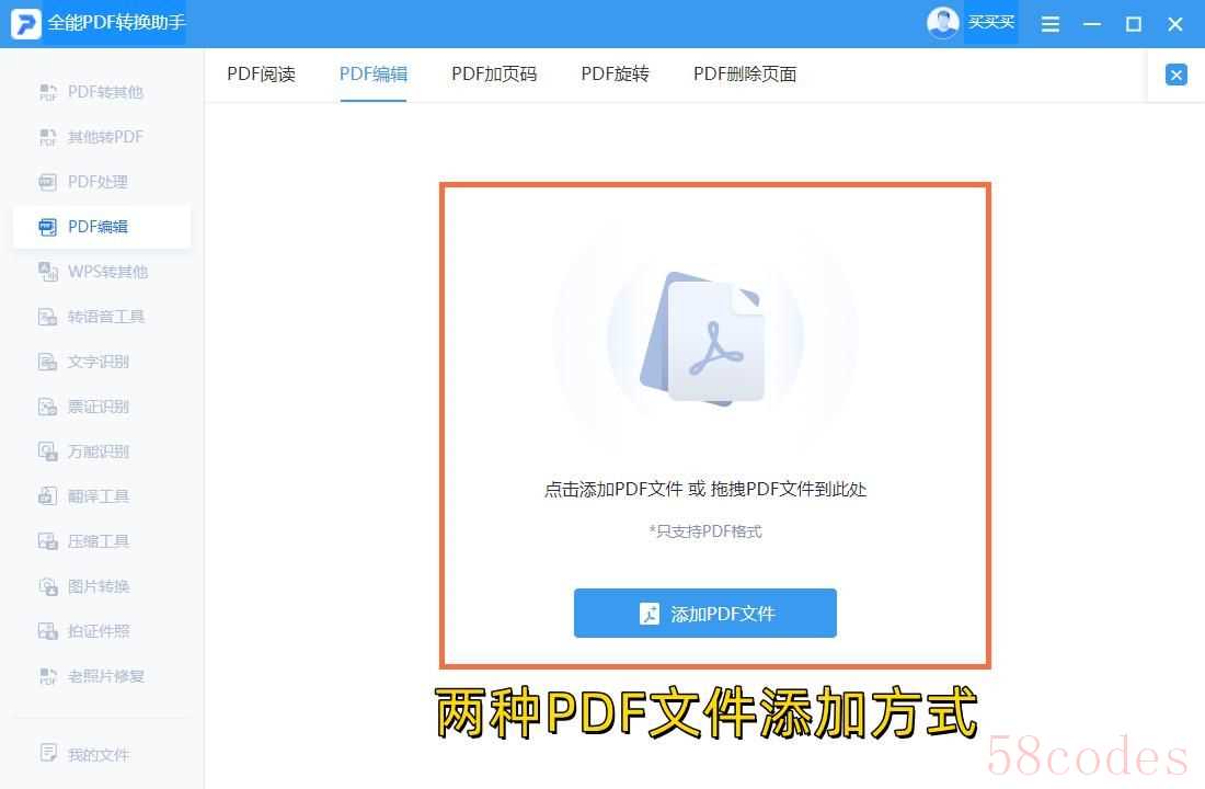 这时大家就可以根据个人习惯选择上传文件的方式,分别是一键拖拽法,或是点击【添加PDF文件】进行导入;