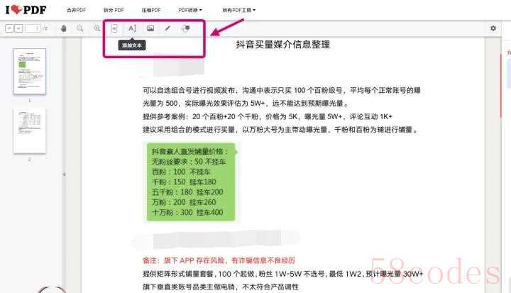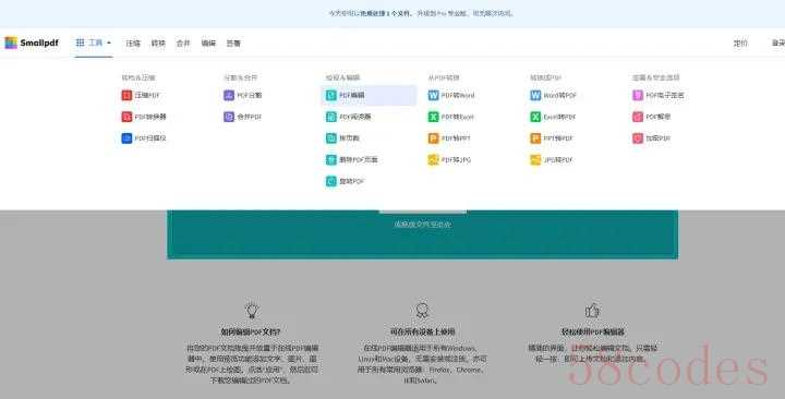 也是一个好用的PDF文件在线编辑工具网站,常见的PDF编辑功能都有,比如PDF压缩、合并、转换格式等等,PDF编辑功能支持添加文本、标注、图片,还可以设置重点内容高亮,每天可以免费操作一个文件,升级到Pro版本即可无限制使用了,但是升级需要Pay money