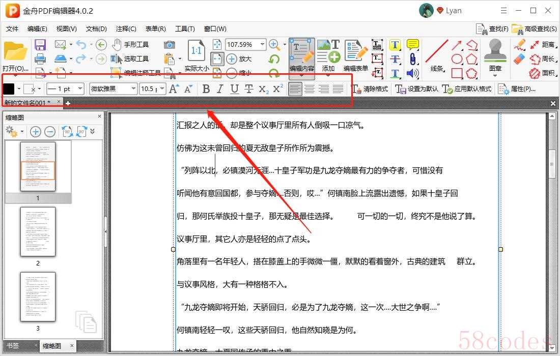 第四步、如图,在以下位置可对文本进行样式设置,例如字体、颜色、大小等;