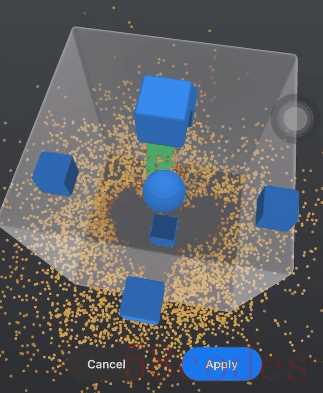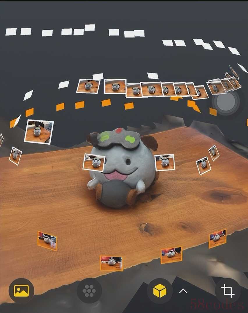 比如会在物体周围显示拍摄的照片,比如用绿色、黄色和红色的点状图来显示扫描物体的完成度等等。