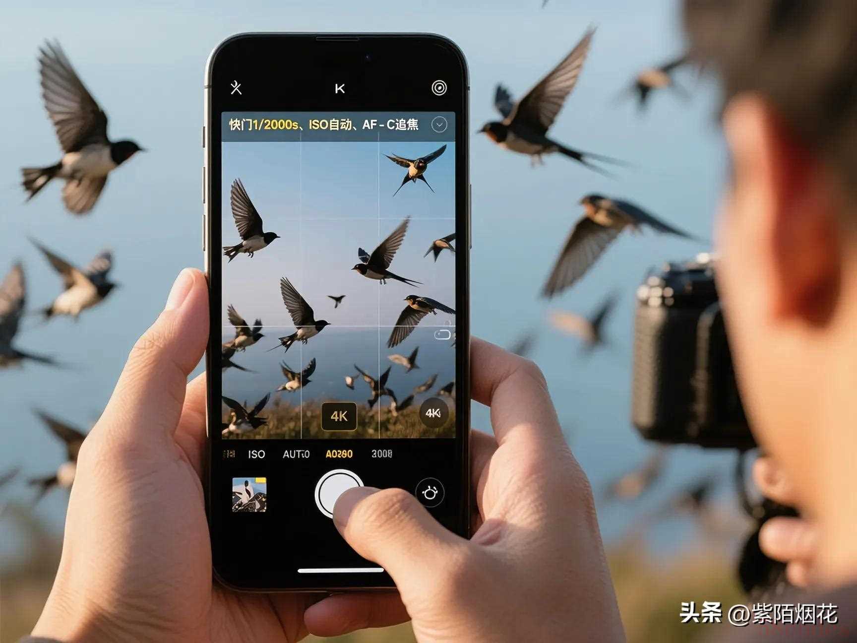 在评论区立下flag,完成拍摄记得回来打卡,点击关注,下期将揭秘《手机拍雨燕:手机锁定时速114公里的天空刺客》