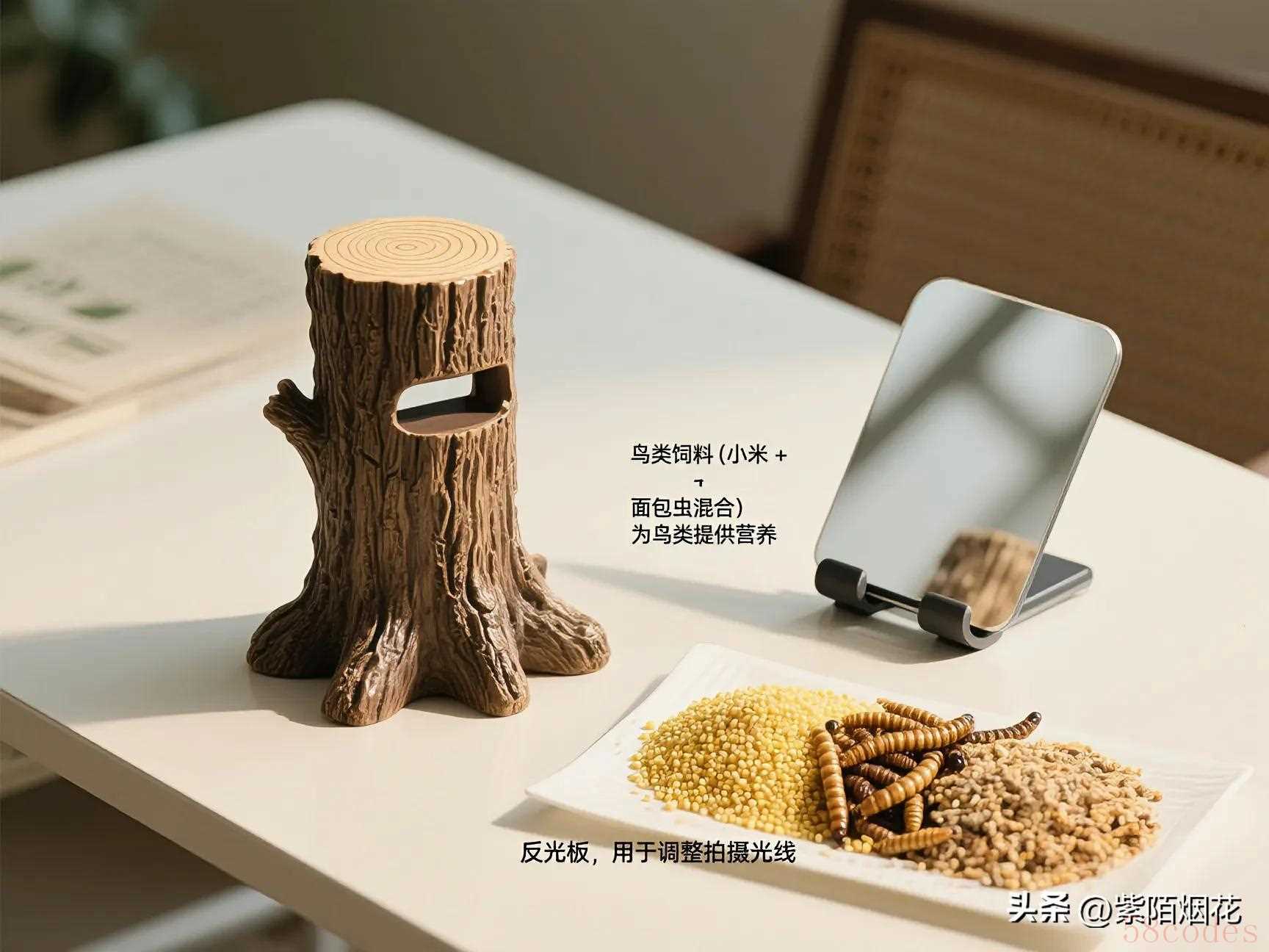 A:手机外接微距补光灯(调整至10%亮度避免惊鸟)