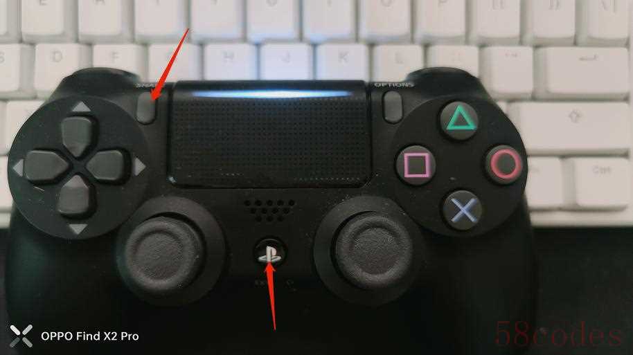 第1步:在手柄未连接的情况下同时按住PS键和左上方“SHARE”键,进入配对模式。