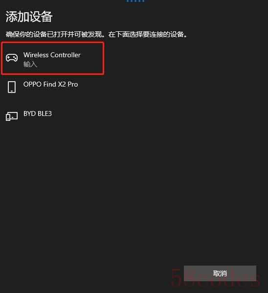 在打开的蓝牙添加设备窗口中,点击第一项也就是“蓝牙”那个地方,然后进入到添加设备的窗口,当你的手柄进入匹配模式的情况下,这里面会显示一个名为“Wirless Controller”的设备,然后单机该设备即可,然后等待显示“你的设备已准备就绪”字样之后就意味着你的手柄和电脑已经完成了连接。