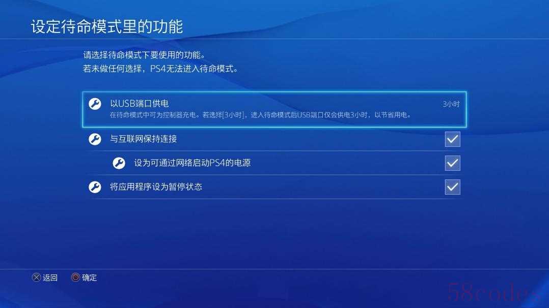 如需唤醒待命的PS4,还需勾选待命设置中的选项