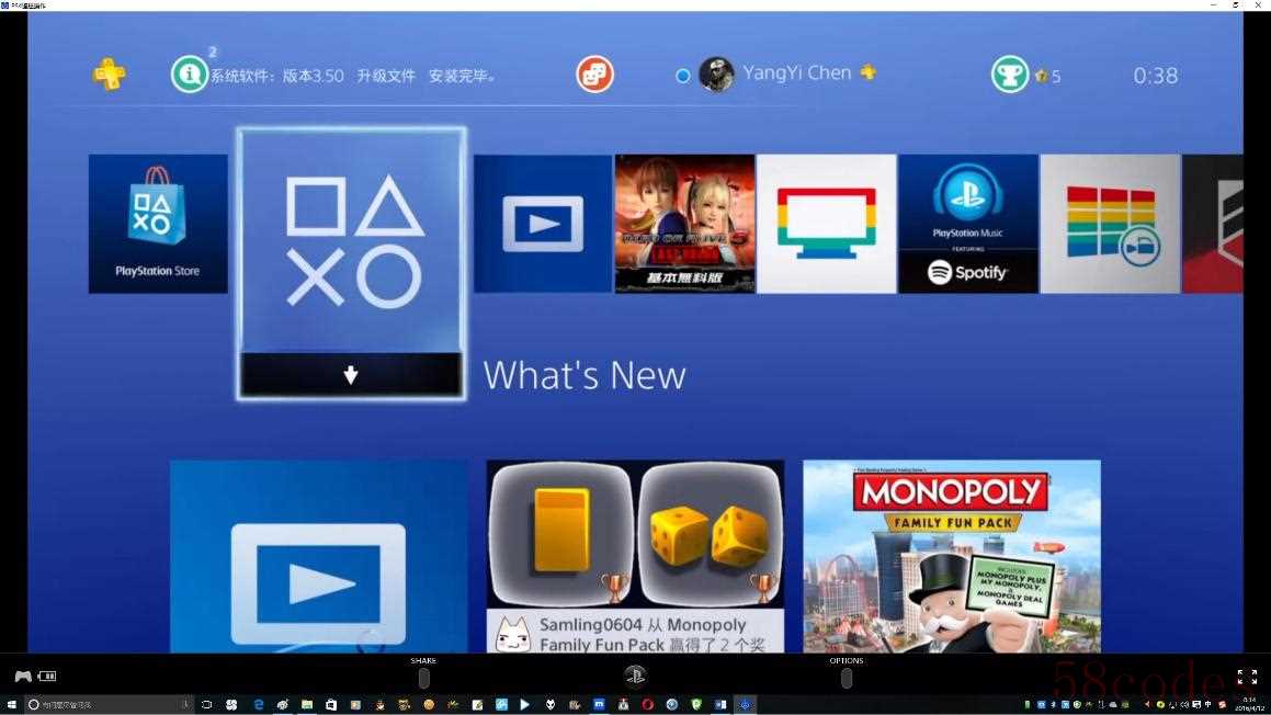 要实现串流功能,首先玩家要将PS4的固件升级到最新的3.5版本。这并不是什么问题,目前国内连接PSN还算流畅,笔者家里的20M光纤平均下载速度也能达到500KB/s,基本上230M的固件在20分钟内就能下载完成,按照该有的步骤安装固件并且重启即可。