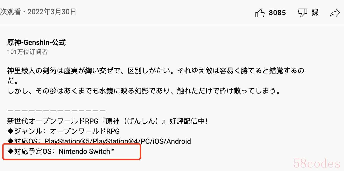 此外,还有细心的网友发现,《原神》官方自 4 月 12 日的“雾海纪行印象歌曲”起至今上传的所有视频在简介部分都删除了“预定登陆平台:任天堂 Switch”的文字。