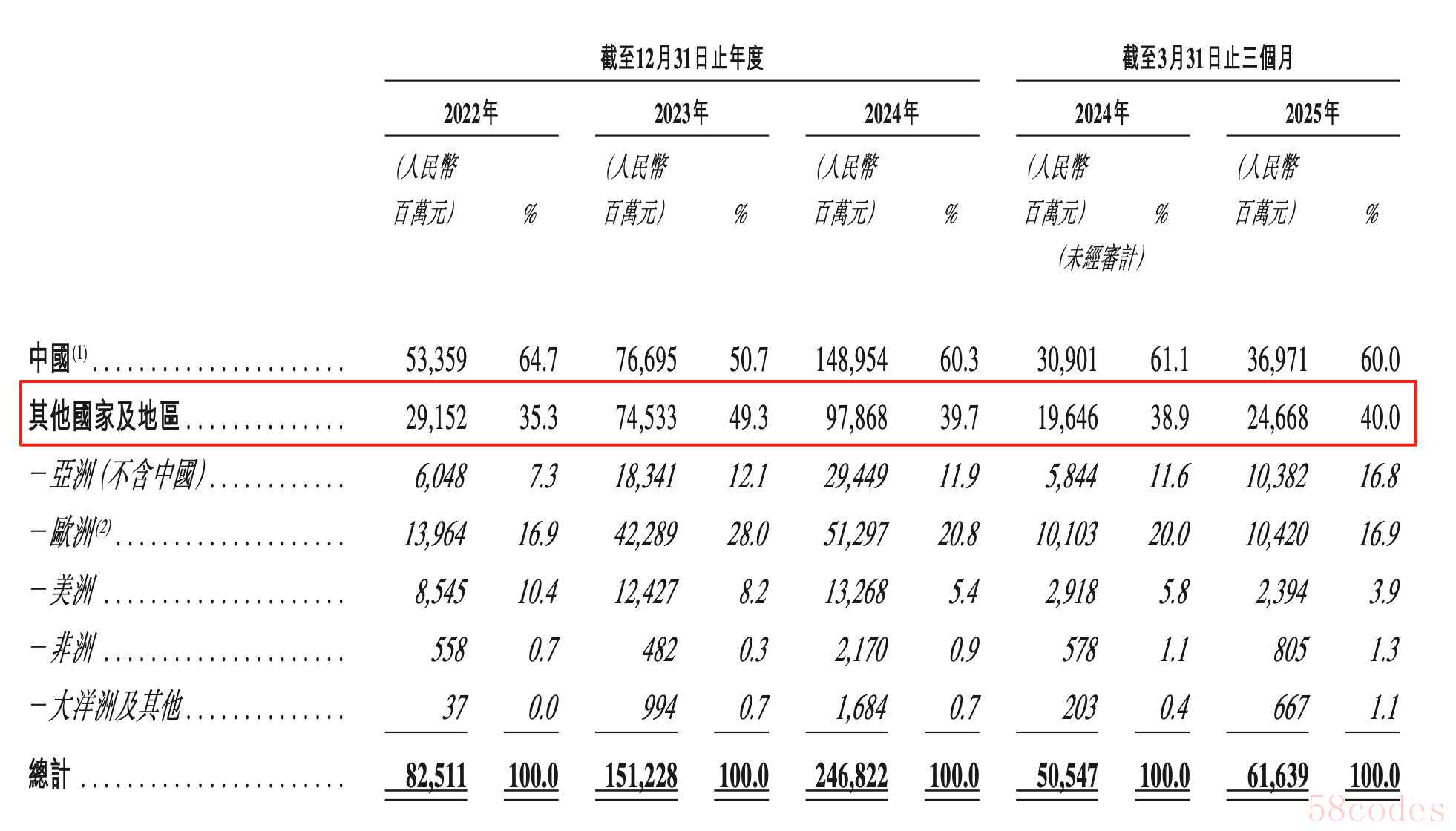2022年、2023年、2024年、2025年一季度,奇瑞汽车在海外市场的乘用车销售收入分别为人民币291.52亿元、745.33亿元、978.68亿元、246.68亿元,在企业整体乘用车收入中占比35.3%、49.3%、 39.7%、40.0%,基本维持高位,有四成的收入来源于海外。