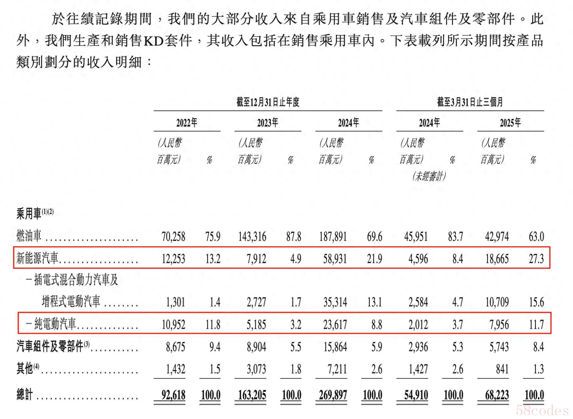 2022年、2023年、2024年,奇瑞的新能源车所带来的营收占比分别为13.2%、4.9%、21.9%;其中纯电车型营收占比分别为11.8%、3.2%、8.8%。到2025年第一季度,奇瑞的新能源车营收占比攀升至27.3%,纯电车型营收占比也达到11.7%。奇瑞的新能源车型所带来的营收占比持续增长。