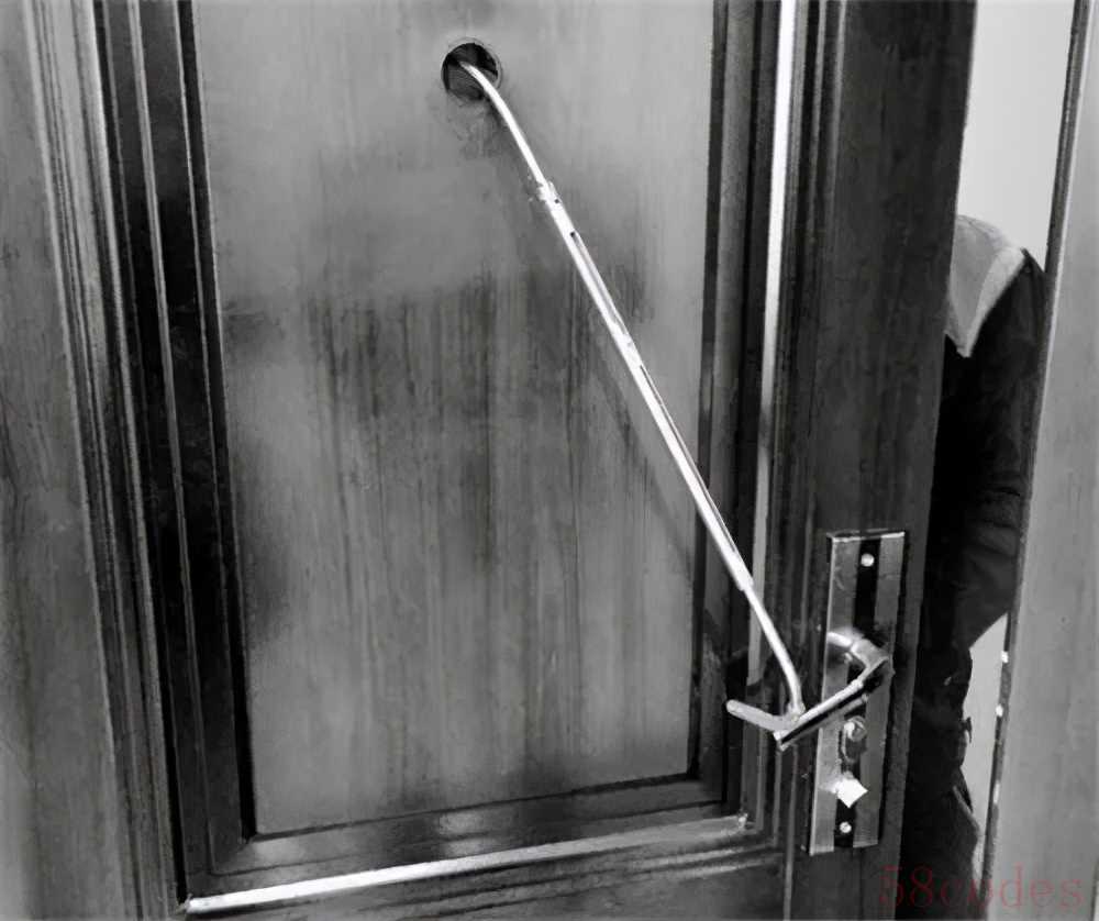 卸下防盗门的猫眼,利用长钩子直接勾住门把手开锁。