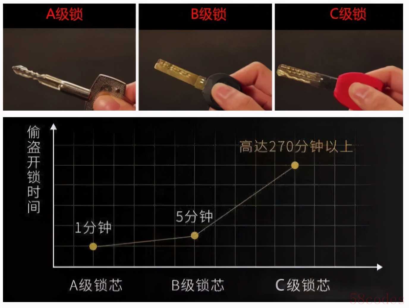 4、锁芯等级在国家规定的行业标准中,C级锁芯是防盗最强最安全的锁芯。不过,在选购智能门锁的时候,会发现有些产品写着“超B级”锁芯,其实呢,“超B级”只是商家的宣传语而已,智商税大家可以少交一点啦!