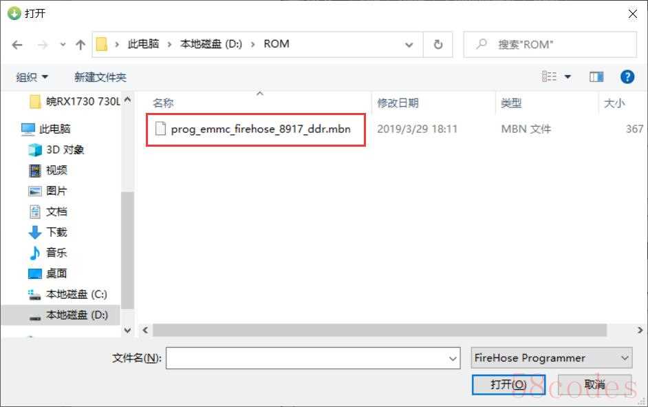 3、点击“ Browse…”,找到解压后的固件包(找到你解压固件的地方),在弹出的对话框中选择:“prog_emmc_firehose_8917_ddr.mbn”文件,这里强调一下,不是所有的品牌型号的机型都是这个文件,名称或有一些差别,再点击“打开”。