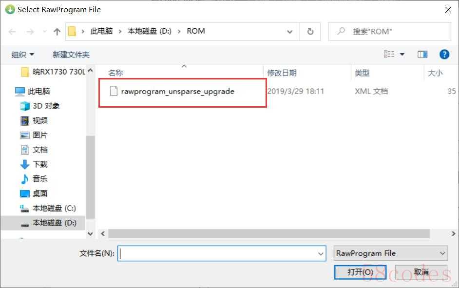 5 、点击“Load XML“,找到解压后的固件包,选择“rawprogram_unsparse_upgrade”文件,点击“打开”。