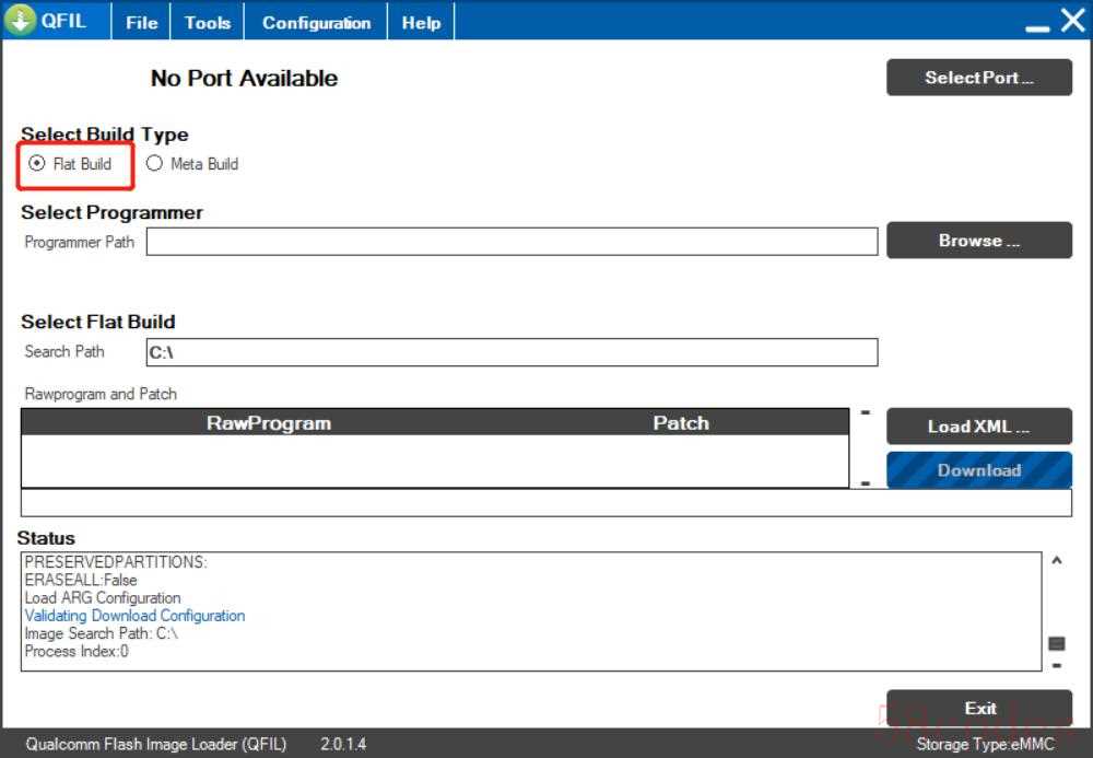 3、重新返回QFIL主界面,选择“Flat Build“。