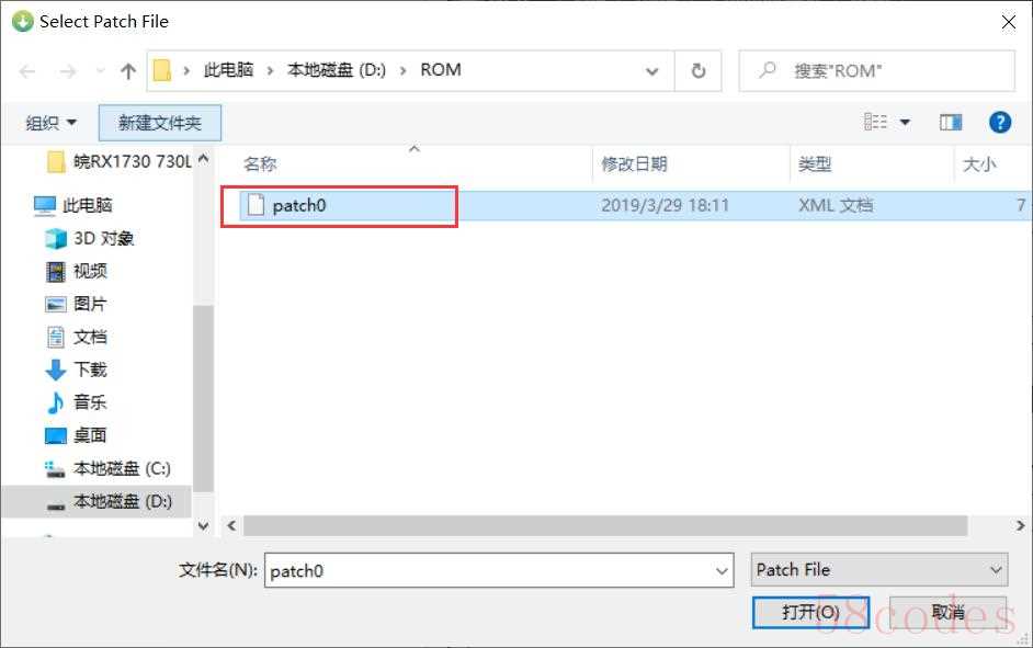6、在弹出的窗口中选择“patch0.xml“,再点击”打开”