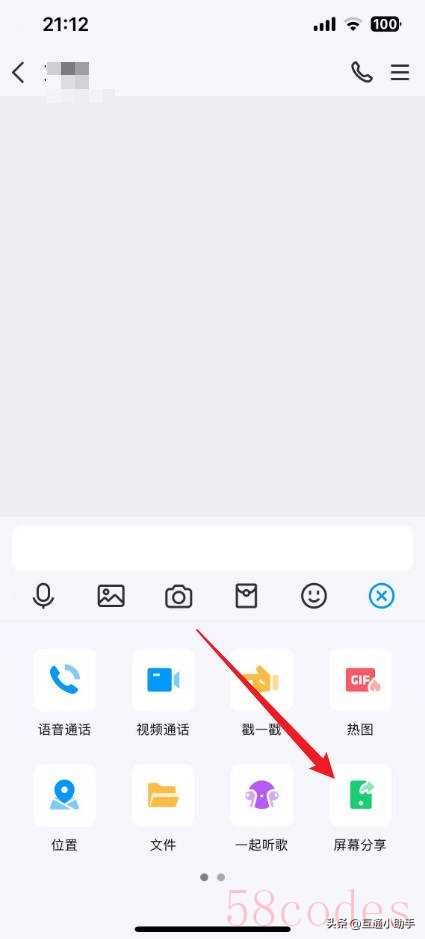 2. "点击工具栏中的“共享”按钮:" 通常位于聊天输入框的上方,图标是一个带有箭头的屏幕。